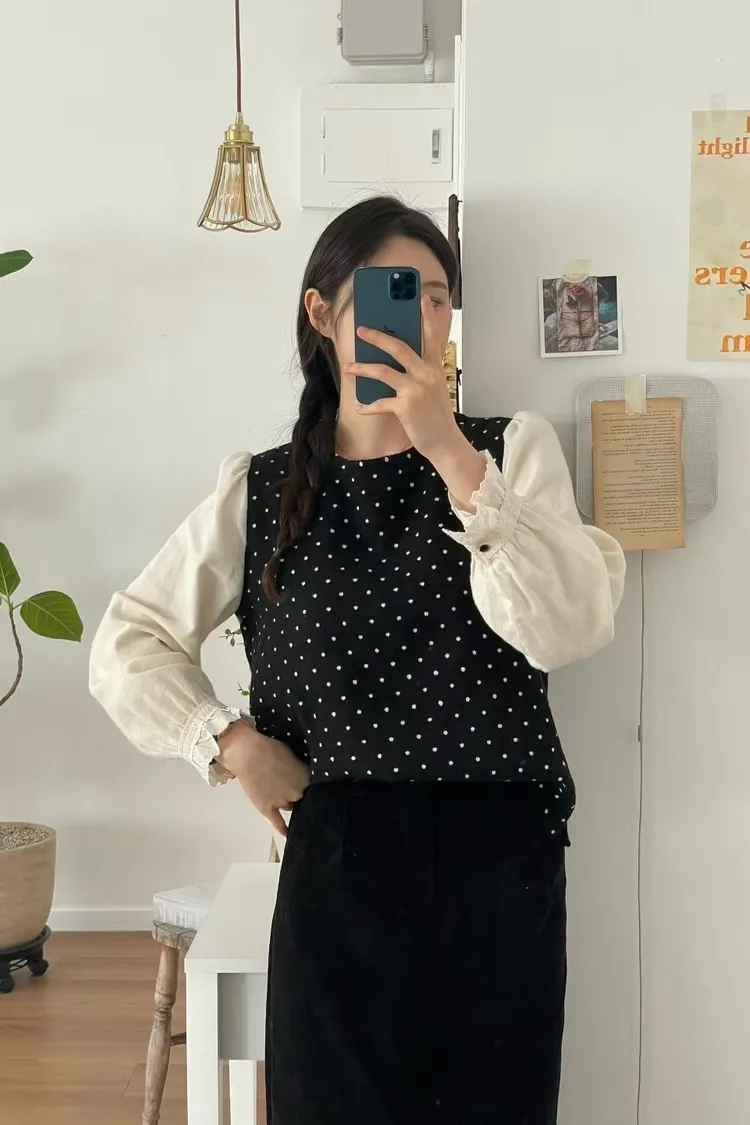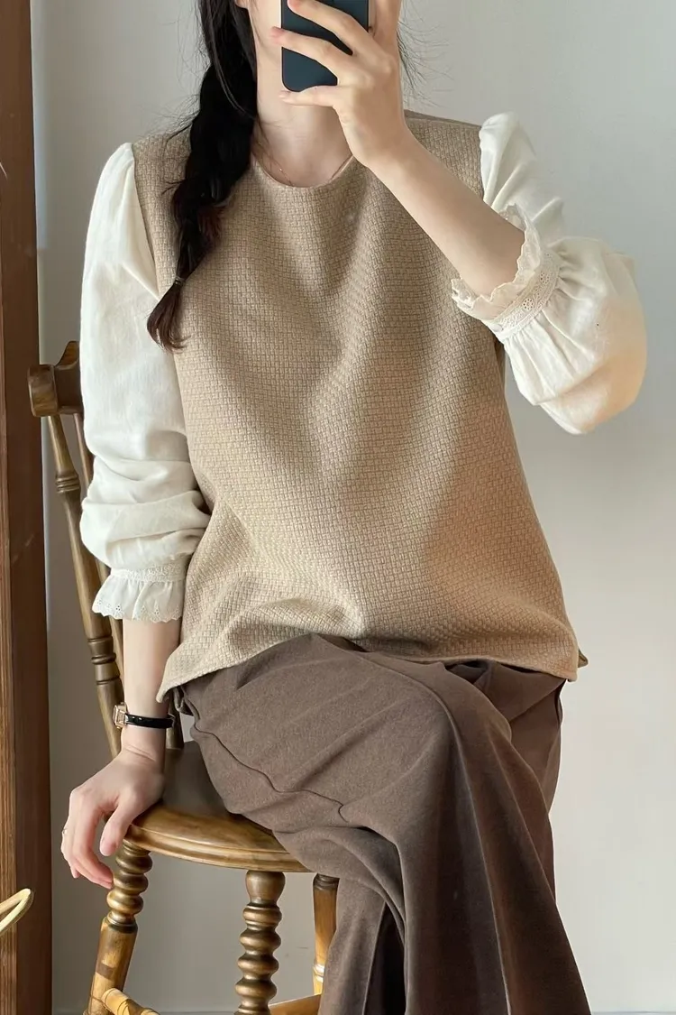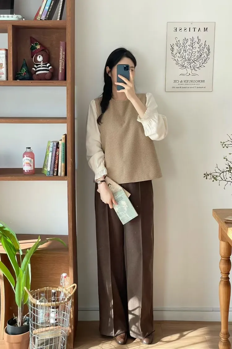 背心+襯衫的假兩件設計,整體走一個溫柔文青感 🤍