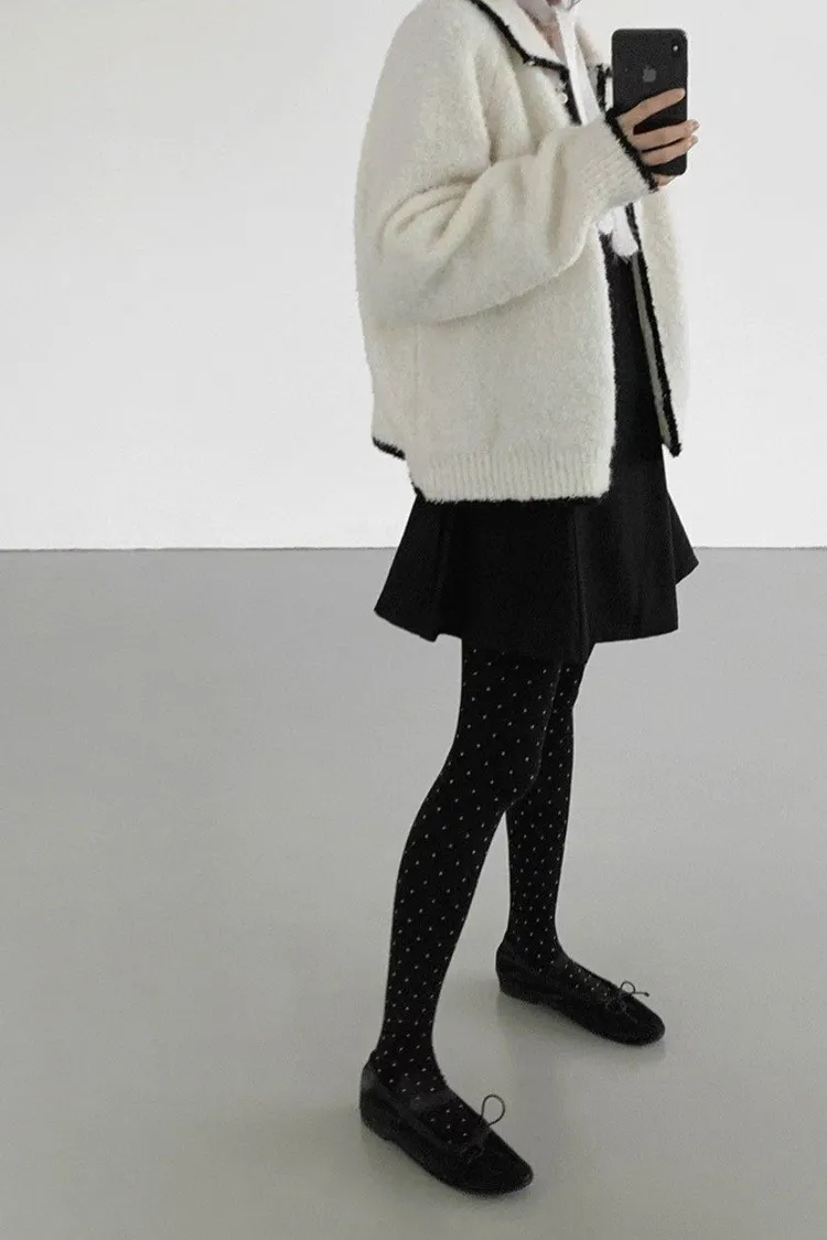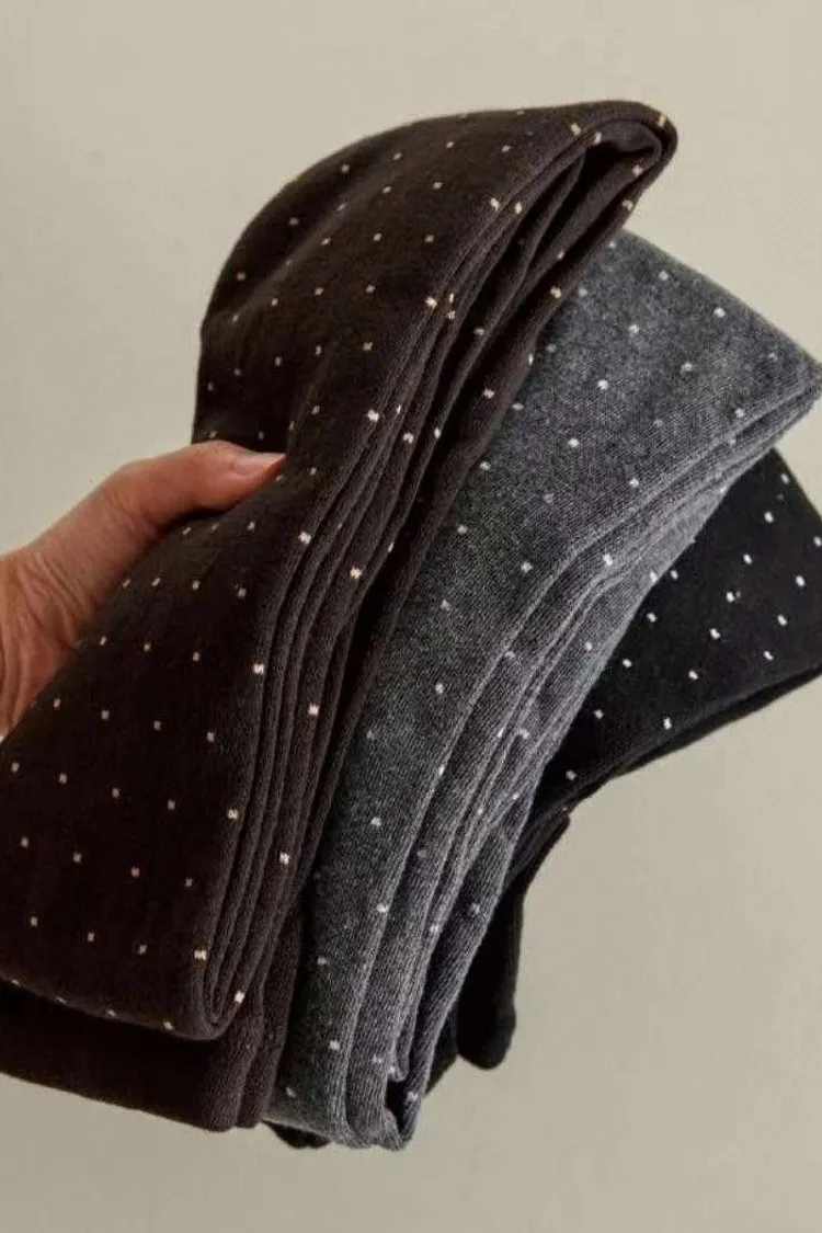 這款是秋冬必備的日系小點點褲襪,3 色可選,溫暖又顯瘦,很適合搭配針織衫、短裙或短褲。 ## 商品特色 - 厚棉針織材質,觸感柔軟、有彈性,穿起來保暖又不緊繃。 - 布面不透膚,能修飾腿型,小點點圖案增加層次感與甜美度,日常、通勤都很好搭。韓國製