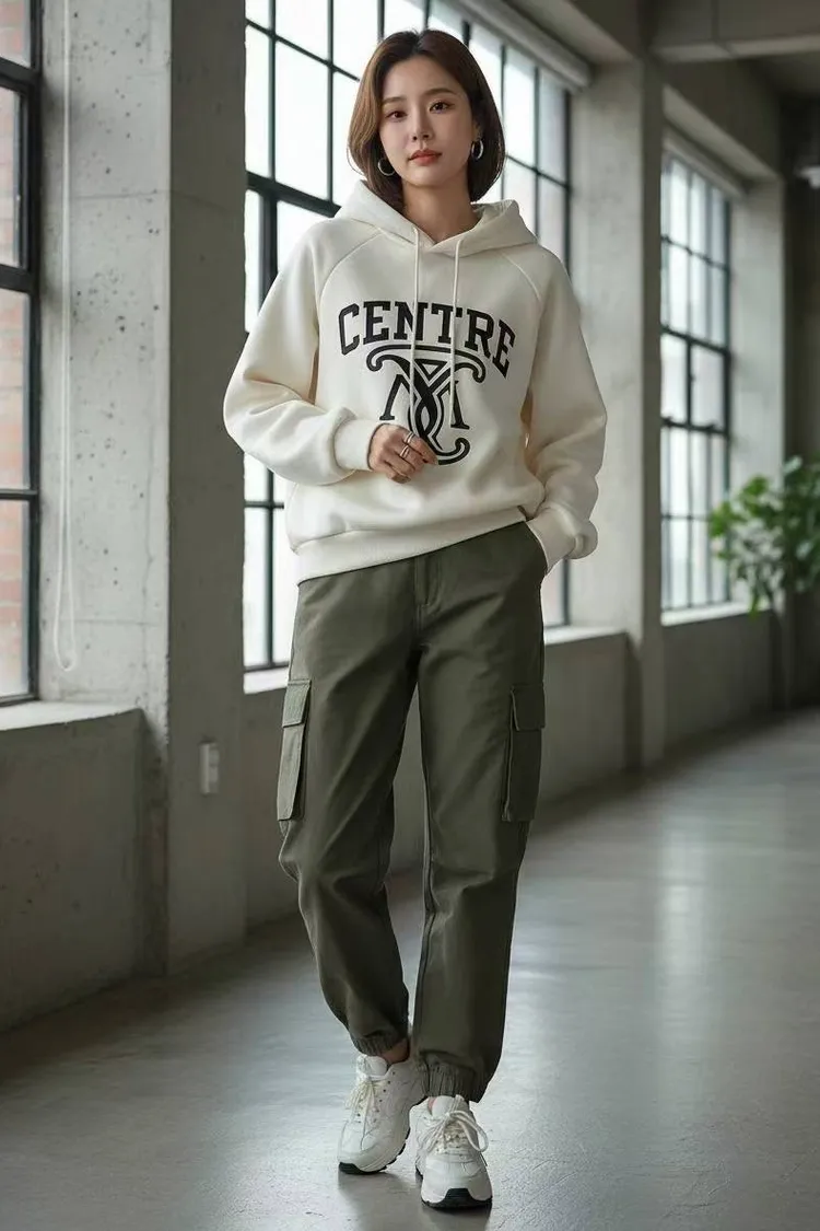 - 搭配寬褲或直筒牛仔褲,可以營造率性街頭風,配上白色球鞋就很有型。