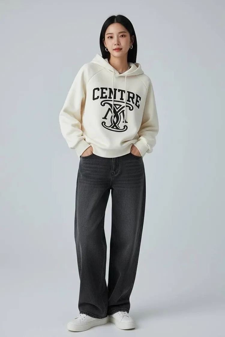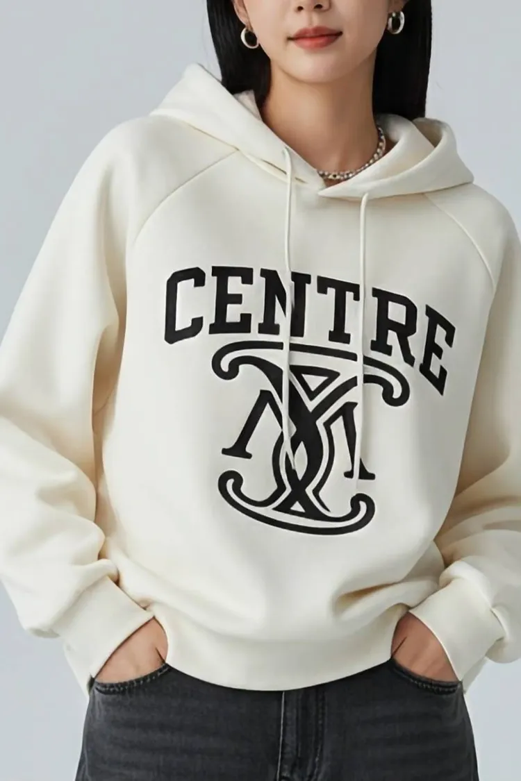 這是一款休閒感十足的寬鬆連帽衛衣,上身版型偏寬大,穿起來有自然垂墜感,搭配牛仔褲或運動褲都很百搭。 正面大學院風字母與圖騰印花設計,增加整體造型感與年輕活力,適合日常外出、上課或通勤穿著。