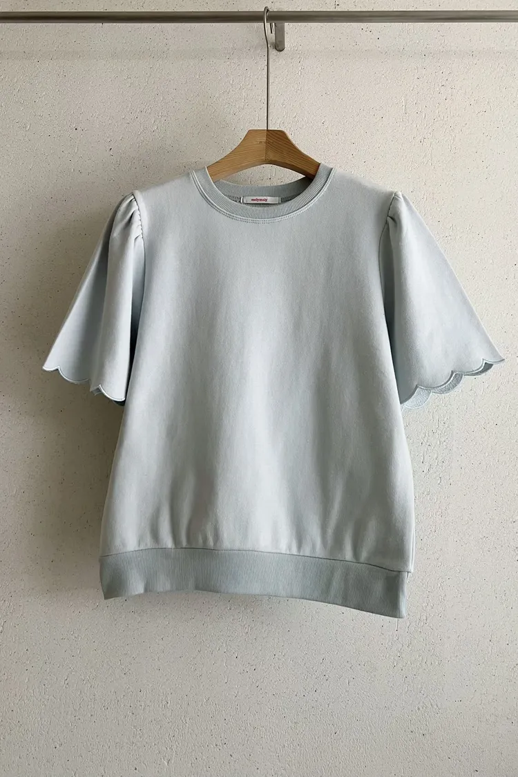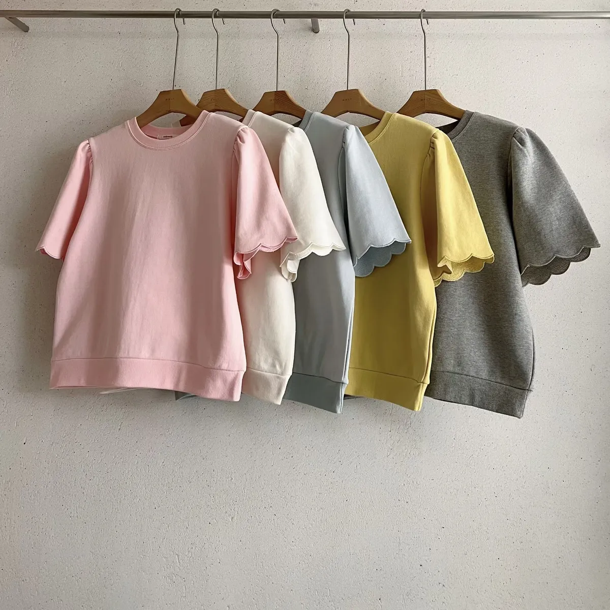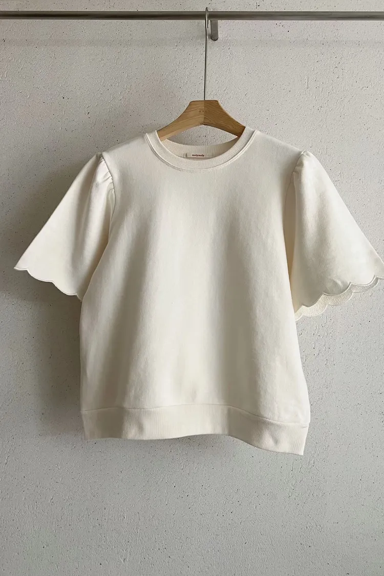 整體版型寬鬆好穿,最吸睛的就是 袖口波浪花邊設計,讓基本款也多了柔美感,穿起來清爽又有氣質。