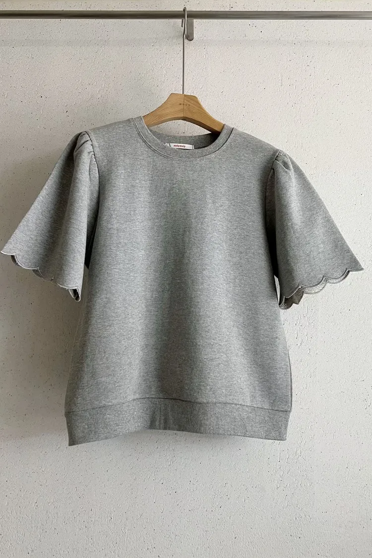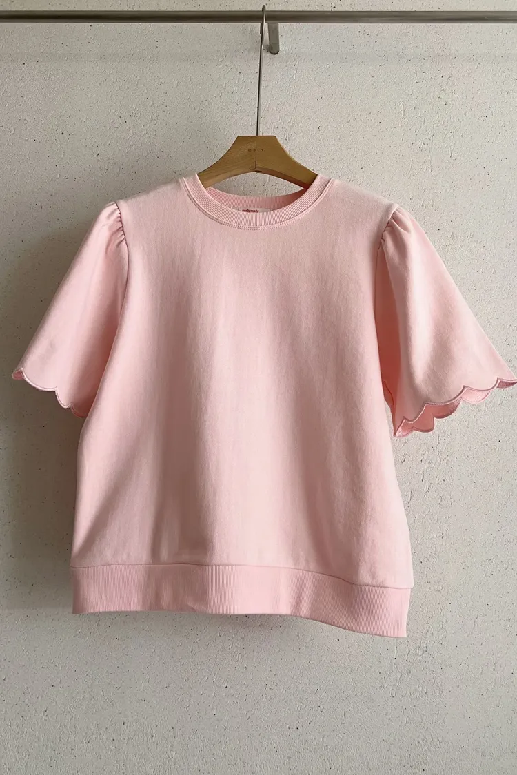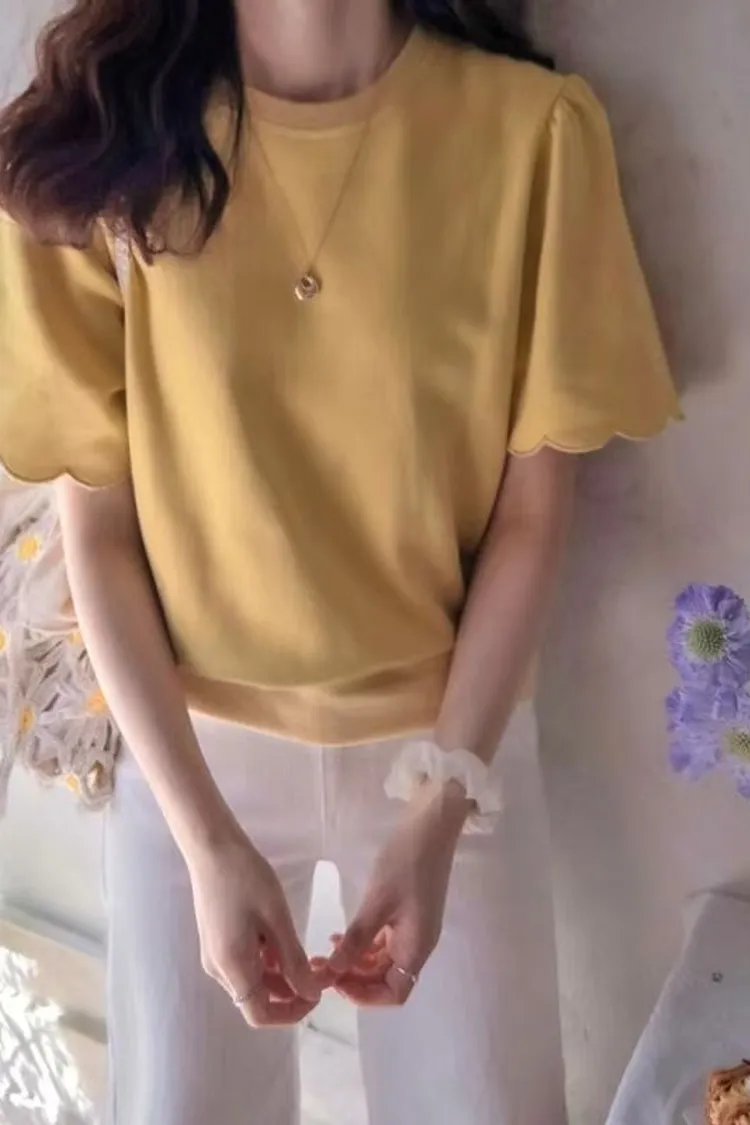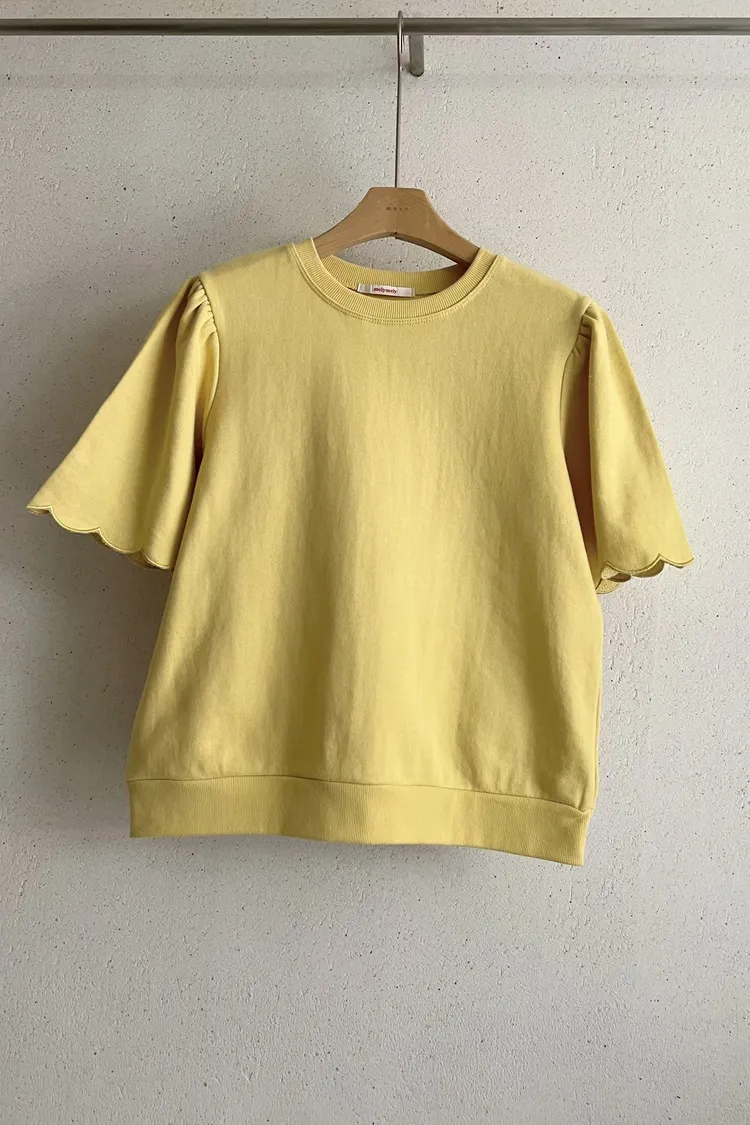 整體版型寬鬆好穿,最吸睛的就是 袖口波浪花邊設計,讓基本款也多了柔美感,穿起來清爽又有氣質。